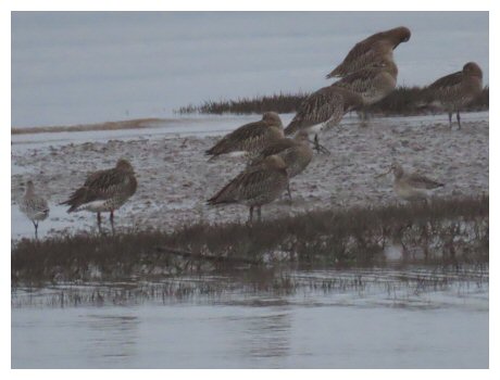 11/10/25 – 326 Canada Goose roosting on the Tidal Res. overnight (then dispersed), and 2 Black-tailed Godwit with them.