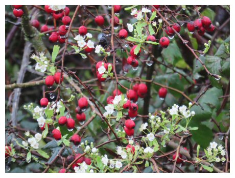 15/11/25 – 12+ Bullfinch (inc. 8 at top of bush on L2, about to go/just arrived), a Black-tailed Godwit, 2+ Black Redstart (the ad male singing), 40 Common Gull on a flooded Lagoon 1, and this Hawthorn full of berries and in full flower/budding !
