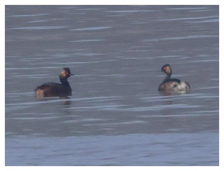 21/3/26 – Two Black-necked Grebe, found in mist at 7:15am, they drifted upriver from the Tidal Res. as the tide came in, and went all the way to Sharpness (2 hours later), where Andy Jordan took the photo below. Best I could do was this video. Only the 5th record for S. Gloucs. and first record of more than a single. But 3rd record for OPS - last in 1999 on Lagoon 3 (when it had water!). Also the first Sand Martin of the year to NE, 9 Siskin including 4 feeding on Black Poplar catkins at The Windbound and a Blackcap singing on Lagoon 2. (#101 species for me at OPS this year.)