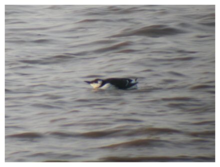Sunday 17/12/06 – A Guillemot was a surprise find ! It was floating slowly down-river just below the tidal reservoir when found at about 2pm, and then drifted up-river with the tide. It is the first to be positively identified at the site, although a Guillemot/Razorbill was seen in September 1994 (from AM’s records). The unidentified duck species was again present on the tidal reservoir (photos below). It is most likely a cross-breed; Chestnut Teal x ?. In the windless evening, the gull roost on the estuary was very visible and held 5,000+ birds, including c2,000 Common Gull and c2,000 Black-headed Gull. There were 173 Curlew roosting on lagoon 3. A Mute Swan pair were back on the lake behind the hide. Also: 1 Knot (Shepperdine), 1 Rock Pipit, c300 Pied Wagtail (roosting), 3 Stonechat, 9 Oystercatcher and c25 Redshank.