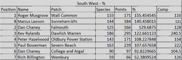 Belated news of the final 2013 results in the South West region of the Patchwork Challenge. The first table shows % of the 2012 score, which was a record itself for me at OPS.