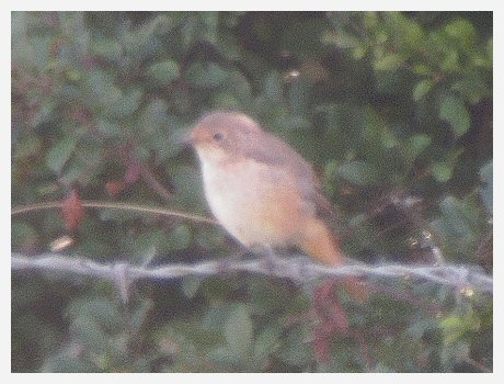 Nice photo of male Redstart in hedge by yacht club, by CL.