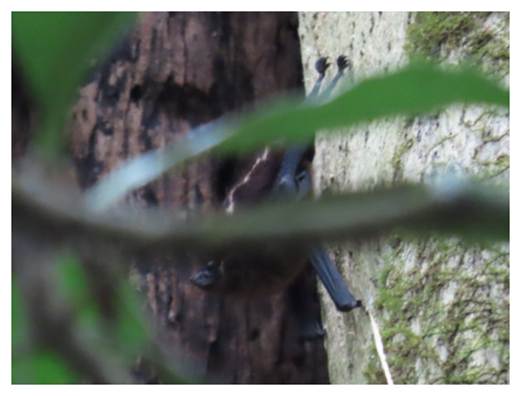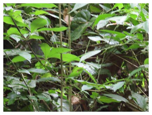 the guide spent 15 minutes trying to coax out of the greenery by mimicking its