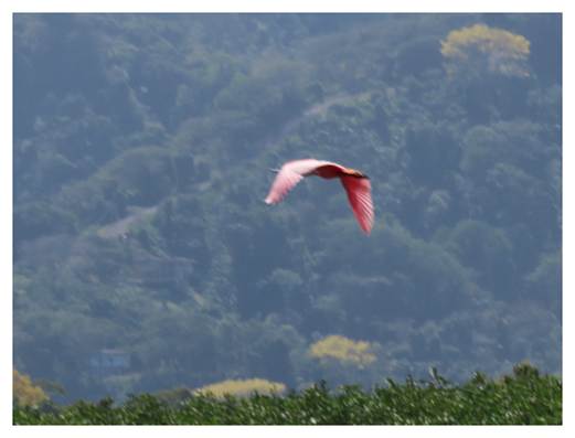 Spoonbill in flight, and we had 3 Grey Hawk and our first 2 Yellow-throated