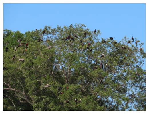 around the estuary and roosting in trees.
