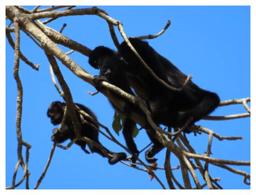 Howler Monkeys, lazing around in a tree next to the road. (Female