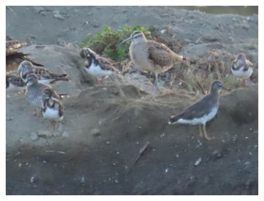 Sandpiper, 10+ Least Sandpiper, 7+ Grey Plover, 6+ Short-billed