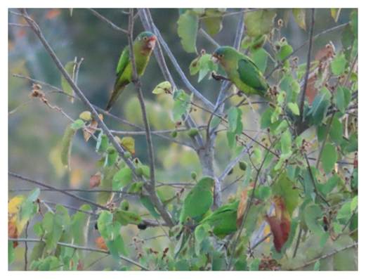 Euphonia and these Red-lored Parrot and Orange-chinned Parakeet