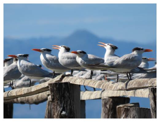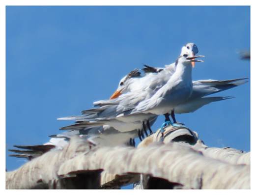 Cabot’s Tern, (2nd photo – front bird) roosted on the lodge’s jetty, along