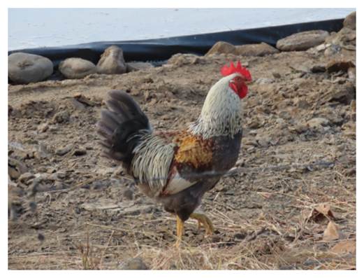 Bunting (the rather drabber female below). And a very handsome Rooster !
