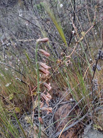 A walk beginning around two small reservoirs, which were completely devoid of life, apart from a Grey Heron. Then up into a hilly pine forest, which only produced a Raven a Buzzard and a Red-legged Partridge (heard). But the flora was very interesting, including Brown Bells (photo below), with a distribution across N Africa, Middle East and to Asia.