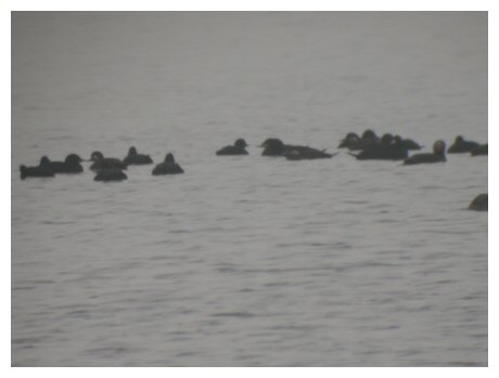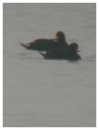 Some of the 32 Common Scoters at Cheddar Reservoir in misty conditions, on 31/3/05.