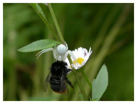 A crab spider species (Misumena vatia) with a bumble bee, in my garden, 15/06/05.